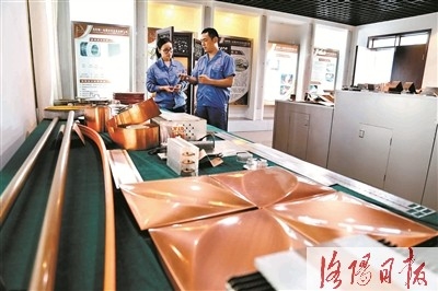 在国际上首次生产出1米宽的铜铝复合板带,首次将铜铝复合材料轧制成0.08毫米厚的箔材,获得2015年中国有色工业协会科技进步一等奖,牵头制定我国首个铜铝复合板带国家标准……一项项行业第一,成就了这家企业在铜铝复合新材料领域“隐形冠军”的行业地位。