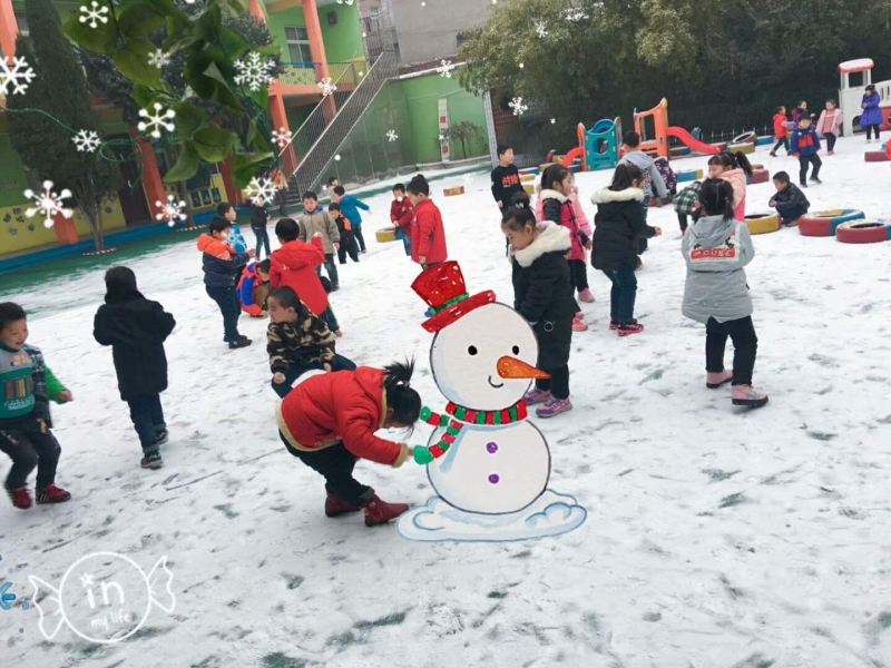 盼望着,盼望着,今年的第一场雪来了!孟津第一县直幼儿园满园欢乐,孩子们在老师的带领下正在玩雪活动。