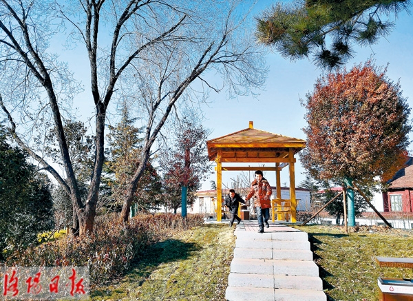 12月16日,在蔚蓝的天空下,孩子们在孟津县城桂花大道和会盟大道新建成的街头游园里玩耍。