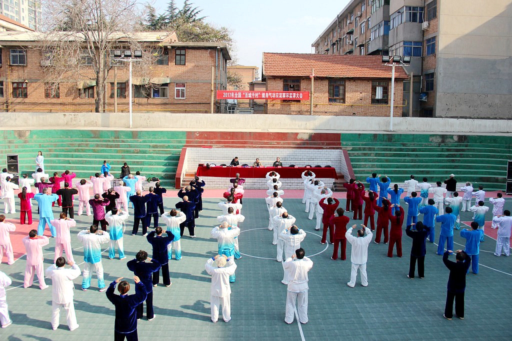 日前,孟津县2017年全国“百城千村”健身气功交流展示活动在县城灯光球场举办。本次活动由县全民健身工作领导小组办公室主办,县健身气功协会承办,县健身气功各站点协办,共有十三支代表队近二百名运动员参加,展示项目有健身气功八段锦、六字诀、易筋经 、五禽戏、导引养生十二法、马王堆术、大舞、太极养生杖等。