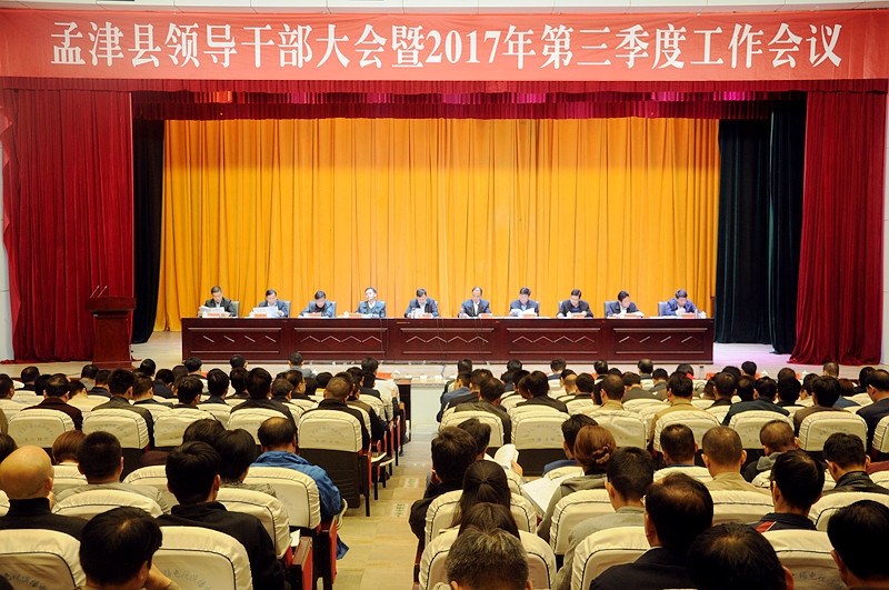 12日上午,孟津县召开全县领导干部大会暨第三季度工作会议,贯彻落实市委十一届四次全会精神,总结全县前三季度工作,安排部署第四季度任务,动员全县上下把思想和行动统一到市委、县委的决策部署上来,抢抓发展新机遇,强力攻坚四季度,决战决胜保全年,以优异的成绩向党的十九大献礼。在孟的副县级以上领导干部出席会议。